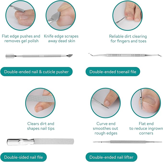 - Precise Nail Care: Our manicure and pedicure set comes with a large, thick nail clipper perfect for anyone to trim their nails with precision. It's designed to handle thick nails.